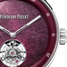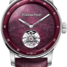 Часы классического дизайна от Audemars Piguet для стильных женщин. Индивидуальность данной модели определяет статус своего обладателя и часы становятся неотъемлемой составляющей образа современного человека. Это лучший выбор для тех, кто хочет подчеркнуть свой высокий статус и неординарность. Часы выполнены в корпусе из белого золота 18 карат размером 38 мм. Толщина корпуса составляет 9,6 мм. Механизм с автоматическим подзаводом работает от амплитуды движения руки. Часы с водонепроницаемостью 30 м перенесут небольшое случайное попадание воды. Циферблат закрыт прозрачным антибликовым стеклом из сапфирового хрусталя высокой прочности, благодаря чему обеспечивается максимальная защита от сколов и механических повреждений. Ремешок из кожи аллигатора с раскладывающейся золотой застежкой превосходно дополняет изысканный образ модели. Турбийон. Калибр 2968. Запас хода до 50 часов. Циферблат бордовый. Задняя крышка из сапфирового стекла.Гарантия и комплектация