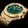 Роскошные классические мужские часы подчеркнут как строгий деловой стиль, так и высокий статус своего владельца. Эта модель является аксессуаром, в дизайне и механизме которого соблюдены все современные тенденции часового дела. Корпус часов изготовлен из желтого золота 18 карат и имеет размер 41 мм. Толщина корпуса часов составляет 10,5 мм. Механизм с автоматическим подзаводом работает от амплитуды движения руки. Эти часы с водонепроницаемостью 50 м позволят вам плавать в бассейне или принимать душ. Циферблат закрыт прозрачным антибликовым стеклом из сапфирового хрусталя высокой прочности, благодаря чему обеспечивается максимальная защита от сколов и механических повреждений. Модель поставляется на золотом браслете с раскладывающейся золотой застежкой. Калибр 4309. Запас хода до 70 часов. Циферблат малахитовый. Задняя крышка с сапфировым стеклом.Гарантия и комплектация