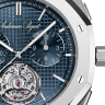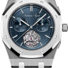Элегантная классика из модельного ряда Royal Oak от Audemars Piguet для мужчин. Часы в превосходном исполнении идеально сочетают в себе гармонично созданный дизайн и передовые часовые технологии. Часы модели 26545XT.OO.1240XT.01 выпущены ограниченным количеством экземпляров. Модель поставляется в титановом корпусе размером 39 мм. Корпус часов толщиной 8,1 мм. Механизм с автоматическим подзаводом работает от амплитуды движения руки. Часы предназначены для того, чтобы в них плавали и имеют водонепроницаемость 200 м. Циферблат закрыт прозрачным антибликовым стеклом из сапфирового хрусталя высокой прочности, благодаря чему обеспечивается максимальная защита от сколов и механических повреждений. Из сапфирового хрусталя сделана и задняя крышка, которая дает возможность воочию увидеть детали механизма и вносит нотку неординарности. Часы укомплектованы титановым браслетом с раскладывающейся застежкой из титана, превосходно дополняющим эксклюзивный образ модели. Ограниченная серия (Limited Edition) 150 шт. Турбийон. Хронограф. Часы для дайвинга. Калибр 8100. Запас хода до 72 часов. Циферблат синий. Задняя крышка прозрачная. Корпус из титана и BMG - объемного металлического стекла .Гарантия и комплектация