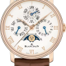 Изысканные мужские часы от Blancpain являются образцами классического стиля. Завершенные линии, гармоничное сочетание мельчайших деталей, высококачественные материалы и ярко выраженная индивидуальность каждой модели привлекают истинных поклонников имиджевых аксессуаров. Часы произведены в золотом корпусе размером 40,3 мм. Толщина часов составляет 10,7 мм. Механизм с автоматическим подзаводом работает от амплитуды движения руки. Часы с водонепроницаемостью 30 м перенесут небольшое случайное попадание воды. Циферблат закрыт прозрачным антибликовым стеклом из сапфирового хрусталя высокой прочности, благодаря чему обеспечивается максимальная защита от сколов и механических повреждений. Модель поставляется на кожаном ремешке с раскладывающейся золотой застежкой. Вечный календарь. Фазы луны. Калибр 5954.4 . Запас хода до 72 часов. Циферблат опаловый. Задняя крышка с сапфировым стеклом.Гарантия и комплектация