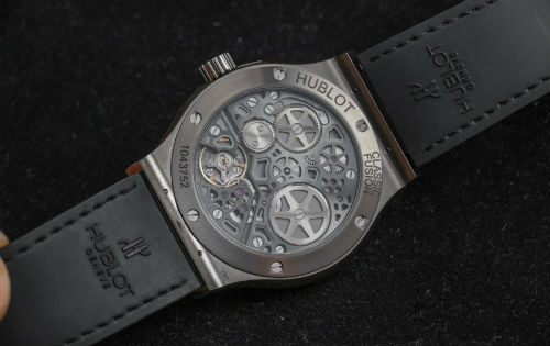 Благодаря использованию ультратонкого механического калибра HUB160, модели Classic Fusion Power Reserve Titanium получились не только удивительно тонкими и компактными, но и работоспособными. Запас их хода составляет 8 часов, что невероятно много в сравнении с аналогичным показателем автоматических калибров Big Bang. Помимо высоких технических характеристик механизм HUB160 обладает невероятной эстетикой, в чем можно легко убедиться, взглянув на него сквозь прозрачное сапфировое стекло по ту сторону корпуса. Каждая его деталь выполнена в соответствии со строжайшими стандартами Hublot, которые являются общими для любого продукта марки вне зависимости от ценовой категории.