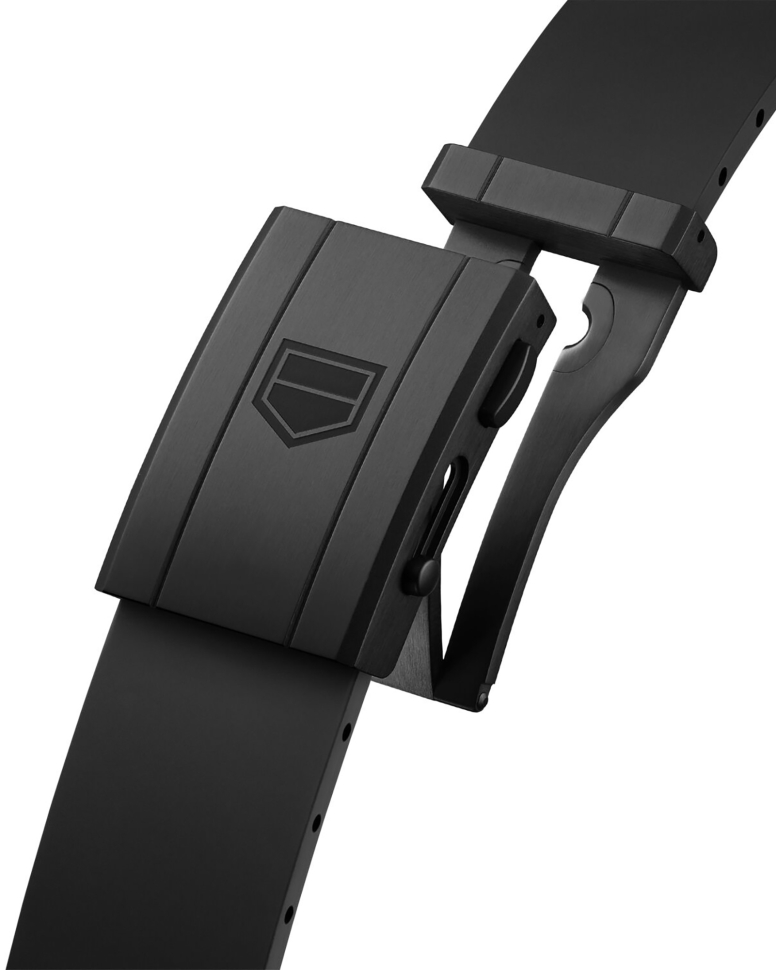 Часы работают на мануфактурном калибре TH20-09 с автоматическим хронографом, турбийоном и 65-часовым запасом хода. Отделка механизма включает темное покрытие Côtes de Genève на мостах и вертикальную кисть на скелетонированном роторе в форме щита. Поставляются на полуинтегрированном черном каучуковом ремешке с раскладывающейся застежкой из коллекции Extreme Sport, дополненным центральным вентиляционным отверстием, выполненным в стиле NACA, и черным титановым центральным звеном с DLC-покрытием.