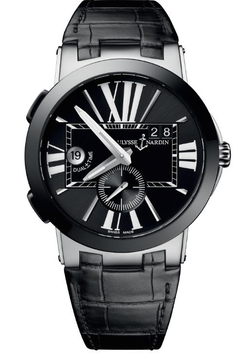 Коллекция часов Ulysse Nardin Executive имеет широкий ассортимент усложнений и стилей: от относительно лаконичных, но элегантных стальных моделей с двумя часовыми поясами до турбийонов, моделей с драгоценными камнями, в корпусах из драгоценных металлов и скелетонов. Часы для путешествий Executive Dual Time с функцией двойного времени сочетают в себе функциональность и сдержанный стиль благодаря тонкому профилю, черному фиксированному безелю, полированным поверхностям.