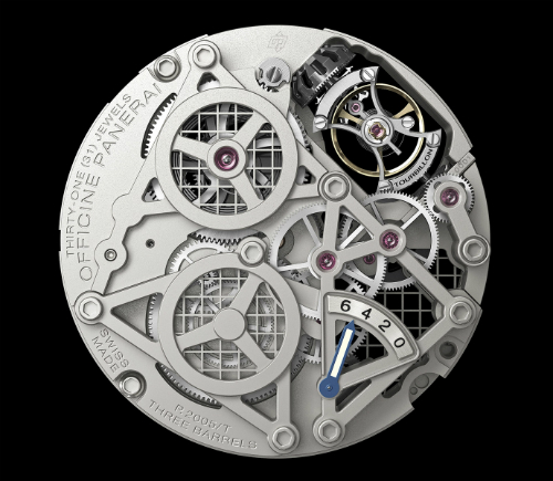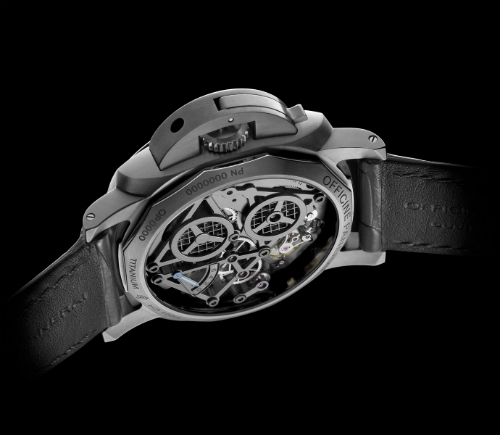 Ее примечательной особенностью стал инновационный дизайн, разработка которого потребовала от мастеров недюжинной изобретательности. За его основу был взят скелетонизированный механизм с облегченной конструкцией, реализовать которую традиционными способами не представлялось возможным. Для достижения этих целей мастера воспользовались уникальной технологией, позволяющей методом лазерного спекания металлов слоем за слоем создавать трехмерные объекты из порошкового титана. Такой подход позволил воплотить в реальность концепцию ультра-легкого скелетонизированного механизма с соблюдением требуемых размерных допусков и прочностных характеристик. В качестве основного материал корпуса использовался специальная марка облегченного титана, которая на более чем на треть легче стандартного аналога, применявшегося в более ранних моделях Panerai.