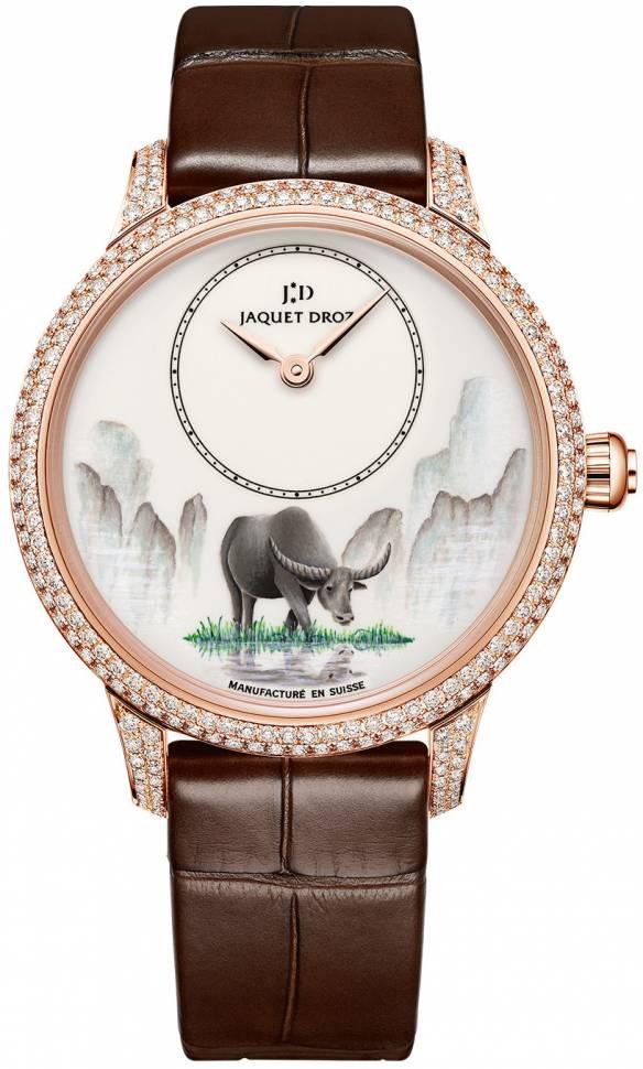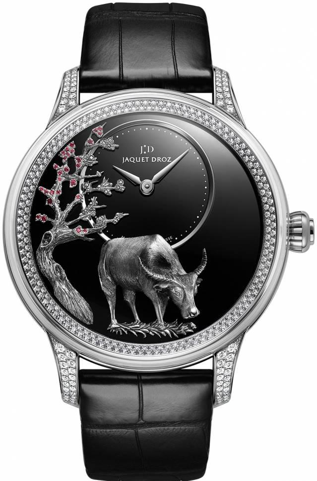 Для нового знака зодиака китайского года бренд представляет четыре новые модели Jaquet Droz Buffalo ограниченным тиражом по 8 экземпляров каждого наименования. Обновление включает дамские часы J005003228 диаметром 35 мм из розового золота и 41-миллиметровое мужское издание J005123206 с миниатюрной росписью быка на эмалевом циферблате. В двух других мужских версиях, украшенных гравированными рельефными изображениями быка, две модели диаметром 41 мм с циферблатом из черного оникса сделаны из белого золота с бриллиантом J005024286 и розового золота J005023295.