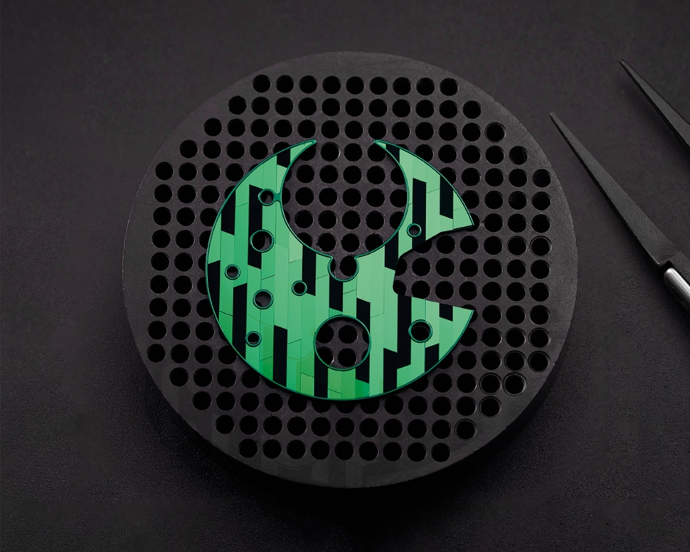 Швейцарская компания Ulysse Nardin с 2019 года выпускает циферблаты с кремниевой маркетри. Новая модель Blast [Free Wheel Marquetry Silicon Green] 2025 года ограниченной серии в 10 экземпляров по цене $155000 представляет собой версию с зеленым циферблатом оригинальной модели часов Blast Free Wheel Marquetry 2023 года и имеет силуэт с угловатыми выступами коллекции Blast.
