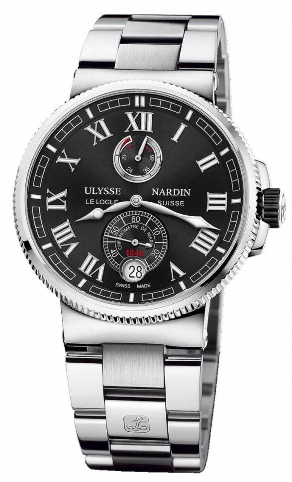 Элегантная классика из модельного ряда Marine от Ulysse Nardin для мужчин. Часы в превосходном исполнении идеально сочетают в себе гармонично созданный дизайн и передовые часовые технологии. Корпус часов изготовлен из нержавеющей стали и титана и имеет размер 43 мм. Механический калибр с функцией автоподзавода, который приводит в движение стрелки, собран лучшими мастерами. Часы предназначены для того, чтобы в них плавали и имеют водонепроницаемость 100 м. Циферблат закрыт прозрачным антибликовым стеклом из сапфирового хрусталя высокой прочности, благодаря чему обеспечивается максимальная защита от сколов и механических повреждений. Браслет выполнен из нержавеющей стали и комплектуется раскладывающейся стальной застежкой. Хронометр. Запас хода до 60 часов.