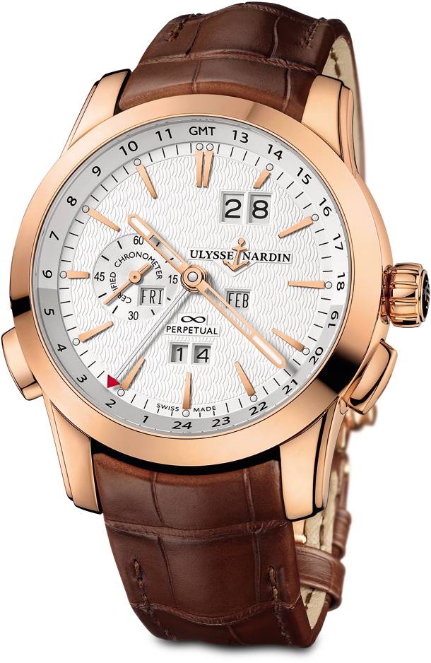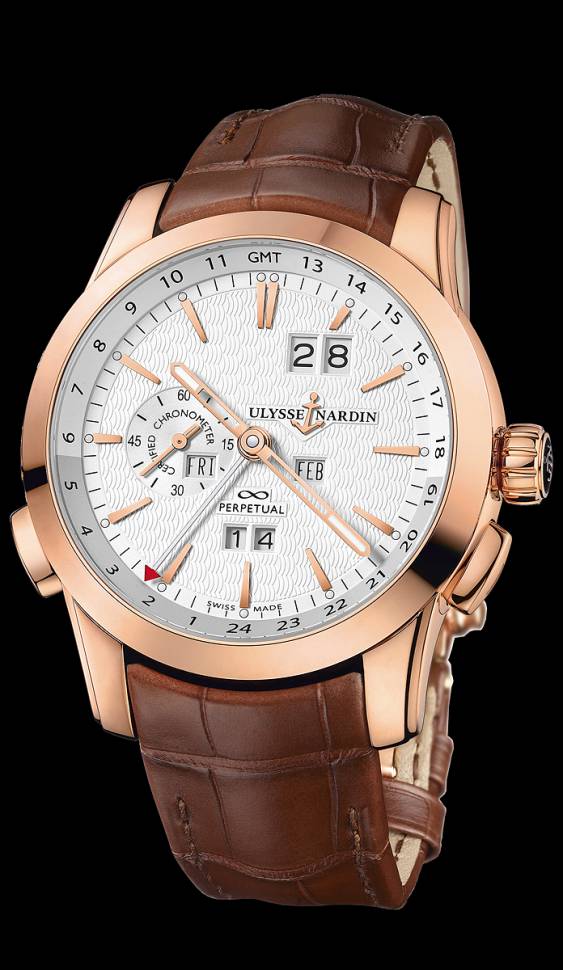 За блеском драгоценных металлов скрывается уникальный механизм с автоподзаводом, который реализует сразу две сложные функций: функцию вечного календаря и опцию показа времени двух часовых поясов. Остальную работу можно смело доверить высокоточному швейцарскому калибру. Коллекция Perpetual Calendars несомненно придется по вкусу опытным коллекционерам, а также всем тем, кто по достоинству оценит сложную механику от Ulysse Nardin. Запредельная сложность механизма не отразилась на его сложности использования — корректировка времени второго часового пояса производится нажатием одной из двух кнопок с левой стороны корпуса.