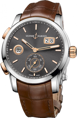В новых моделях функция показа времени второго часового пояса была усовершенствована уникальным корректировочным механизмом, который позволяет нажатием кнопки производить установку дополнительного времени. Все что вам остается — это наслаждаться техническим совершенством автоматического калибра, его швейцарской точностью и традиционной эстетикой дизайна. Высокое дизайнерское искусство и непревзойденное мастерство часовых механиков Ulysse Nardin нашло свое отражение в удивительной коллекции Dual Time Manufacture. Такие часы станут незаменимым спутником в дальней дороге и подчеркнут образ успешной личности.