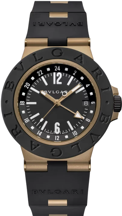 Строгость, элегантность, лаконичность, простота и изысканность форм в сочетании с непревзойденным качеством являются основными характеристиками женских наручных часов компании Bvlgari. Модель поставляется в корпусе размером 40 мм. Механизм с автоматическим подзаводом работает от амплитуды движения руки. Часы предназначены для того, чтобы в них плавали и имеют водонепроницаемость 100 м. Циферблат закрыт прозрачным антибликовым стеклом из сапфирового хрусталя высокой прочности, благодаря чему обеспечивается максимальная защита от сколов и механических повреждений. Ремешок выполнен из каучука и комплектуется раскладывающейся стальной застежкой. Второй часовой пояс. Калибр B192. Запас хода до 50 часов. Циферблат черный. Корпус из бронзы, безель из каучука.Гарантия и комплектация