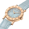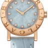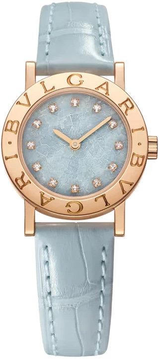 Элегантные классические женские часы от Bvlgari представляют собой идеальное сочетание гармоничного дизайна и совершенного технического оснащения. Они идеально подойдут уверенным в себе людям с высоким социальным статусом, которые хотят подчеркнуть свою индивидуальность и изысканный вкус. Корпус часов изготовлен из розового золота 18 карат и имеет размер 26 мм. Высокоточный надежный кварцевый механизм не нуждается в подзаводке. Часы с водонепроницаемостью 30 м перенесут небольшое случайное попадание воды. Циферблат закрыт прозрачным антибликовым стеклом из сапфирового хрусталя высокой прочности, благодаря чему обеспечивается максимальная защита от сколов и механических повреждений. Модель поставляется на кожаном ремешке с простой золотой застежкой. 12 бриллиантов круглой огранки на циферблате. Циферблат цвета голубого мрамора.Гарантия и комплектация