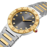 Строгость, элегантность, лаконичность, простота и изысканность форм в сочетании с непревзойденным качеством являются основными характеристиками женских наручных часов компании Bvlgari. Корпус часов изготовлен из нержавеющей стали и желтого золота и имеет размер 33 мм. Высокоточный надежный кварцевый механизм не нуждается в подзаводке. Часы с водонепроницаемостью 30 м перенесут небольшое случайное попадание воды. Циферблат закрыт прозрачным антибликовым стеклом из сапфирового хрусталя высокой прочности, благодаря чему обеспечивается максимальная защита от сколов и механических повреждений. Модель поставляется на стальном браслете с раскладывающейся стальной застежкой. 12 бриллиантов круглой огранки на циферблате. Циферблат черный.Гарантия и комплектация