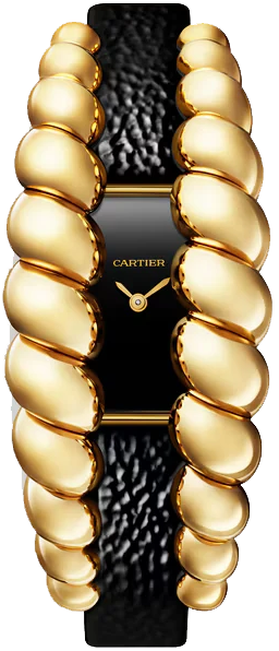 В дизайне и механизме женских часов от Cartier модельного ряда Tressage соблюдены все современные тенденции часового дела. Эта удивительная смесь порождает новый стиль часов, основанный на вековых традициях, получивших современную интерпретацию. Модель поставляется в золотом корпусе размером 56,2х25,7 мм. Корпус часов толщиной 11,5 мм. Высокоточный надежный кварцевый механизм не нуждается в подзаводке. Часы с водонепроницаемостью 30 м перенесут небольшое случайное попадание воды. Циферблат закрыт прозрачным антибликовым стеклом из сапфирового хрусталя высокой прочности, благодаря чему обеспечивается максимальная защита от сколов и механических повреждений. Часы укомплектованы кожаным ремешком с простой застежкой из золота, превосходно дополняющим эксклюзивный образ модели. Циферблат черный. В комплект входят два ремешка из черной кожи: гладкий и блестящий.Гарантия и комплектация