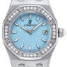 Удобные и, в то же время, стильные часы для женщин. Популярность классических решений в часовой индустрии обусловлена универсальностью линии от Audemars Piguet, простотой и представительностью данного стиля. Инкрустация бриллиантами превращает элегантные часы в изысканное украшение. Изготовленный из нержавеющей стали корпус часов, имеет размер 33х42 мм. Корпус часов толщиной 9,2 мм. Высокоточный надежный кварцевый механизм не нуждается в подзаводке. Эти часы с водонепроницаемостью 50 м позволят вам плавать в бассейне или принимать душ. Циферблат закрыт прозрачным антибликовым стеклом из сапфирового хрусталя высокой прочности, благодаря чему обеспечивается максимальная защита от сколов и механических повреждений. Часы укомплектованы стальным браслетом с раскладывающейся застежкой стальной, превосходно дополняющим эксклюзивный образ модели. 32 бриллианта весом 0,65 карат.Гарантия и комплектация