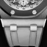 Модель хронографа идеально подходит для мужчин, которые ценят свой неповторимый стиль и являются поклонниками эксклюзивных вещей. Никто не останется равнодушным при виде хронографа из коллекции Royal Oak Offshore от мирового производителя часов Audemars Piguet, каждая деталь которых поражает своим качеством. Изготовленный из титана корпус часов, имеет размер 42 мм. Корпус часов толщиной 14,5 мм. Механизм с автоматическим подзаводом работает от амплитуды движения руки. Часы предназначены для того, чтобы в них плавали и имеют водонепроницаемость 100 м. Циферблат закрыт прозрачным антибликовым стеклом из сапфирового хрусталя высокой прочности, благодаря чему обеспечивается максимальная защита от сколов и механических повреждений. Для изготовления задней крышки корпуса часов также применяется сапфировое стекло, благодаря чему обеспечивается обзор на работу часового механизма. Модель поставляется на каучуковом ремешке с простой титановой застежкой. Хронограф. Калибр 3126 / 3840 на 59 камнях. Запас хода до 50 часов. Циферблат серый. Задняя крышка прозрачная.Гарантия и комплектация