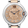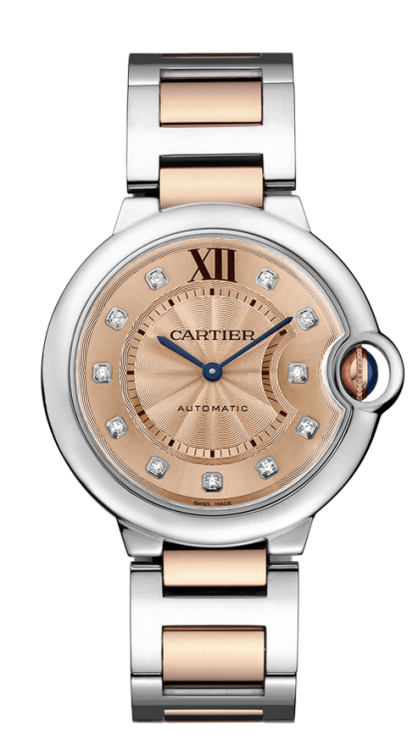 Модель идеально подходит для женщин, которые ценят свой неповторимый стиль и являются поклонниками эксклюзивных вещей. Никто не останется равнодушным при виде часов из коллекции Ballon Bleu de Cartier от мирового производителя часов Cartier, каждая деталь которых поражает своим качеством. Инкрустация бриллиантами превращает элегантные часы в изысканное украшение Корпус часов изготовлен из нержавеющей стали и имеет размер 36 мм. Толщина корпуса часов составляет 12 мм. Механизм с автоматическим подзаводом работает от амплитуды движения руки. Часы с водонепроницаемостью 30 м перенесут небольшое случайное попадание воды. Циферблат закрыт прозрачным антибликовым стеклом из сапфирового хрусталя высокой прочности, благодаря чему обеспечивается максимальная защита от сколов и механических повреждений. Браслет выполнен из нержавеющей стали и розового золота и комплектуется раскладывающейся стальной застежкой. Бриллианты. Сапфировый кабошон на заводной головке.Гарантия и комплектация