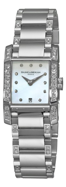 Строгость, элегантность, лаконичность, простота и изысканность форм в сочетании с непревзойденным качеством являются основными характеристиками женских наручных часов компании Baume & Mercier. Инкрустация бриллиантами превращает элегантные часы в изысканное украшение. Корпус часов изготовлен из нержавеющей стали и имеет размер 22х33 мм. Толщина корпуса часов составляет 8,2 мм. Высокоточный надежный кварцевый механизм не нуждается в подзаводке. Часы с водонепроницаемостью 30 м перенесут небольшое случайное попадание воды. Циферблат закрыт прозрачным антибликовым стеклом из сапфирового хрусталя высокой прочности, благодаря чему обеспечивается максимальная защита от сколов и механических повреждений. Браслет выполнен из нержавеющей стали и комплектуется раскладывающейся стальной застежкой. 107 бриллиантов.Гарантия и комплектация