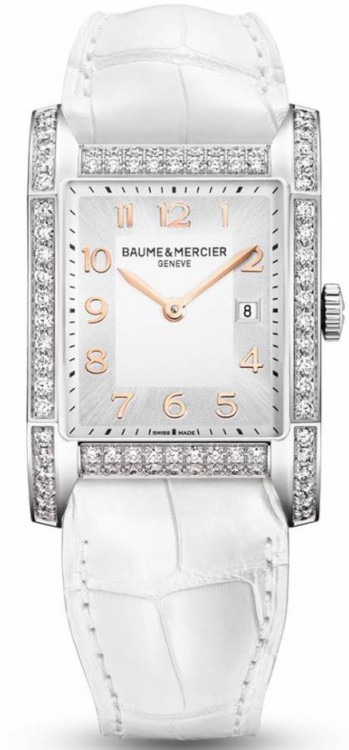 В дизайне и механизме женских часов от Baume & Mercier модельного ряда Hampton соблюдены все современные тенденции часового дела. Инкрустация бриллиантами превращает элегантные часы в изысканное украшение. Эта удивительная смесь порождает новый стиль часов, основанный на вековых традициях, получивших современную интерпретацию. Изготовленный из нержавеющей стали корпус часов, имеет размер 40х27 мм. Корпус часов толщиной 9,5 мм. Высокоточный надежный кварцевый механизм не нуждается в подзаводке. Эти часы с водонепоницаемостью 50 м позволят вам плавать в бассейне или принимать душ. Циферблат закрыт прозрачным антибликовым стеклом из сапфирового хрусталя высокой прочности, благодаря чему обеспечивается максимальная защита от сколов и механических повреждений. Часы укомплектованы кожаным ремешком с раскладывающейся застежкой из стали, превосходно дополняющим эксклюзивный образ модели. Белые бриллианты весом 1,78 карата.Гарантия и комплектация
