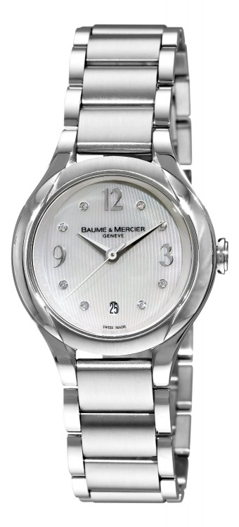 Изысканные женские часы от Baume & Mercier являются образцами классического стиля. Завершенные линии, гармоничное сочетание мельчайших деталей, высококачественные материалы и ярко выраженная индивидуальность каждой модели привлекают истинных поклонников имиджевых аксессуаров. Изготовленный из нержавеющей стали корпус часов, имеет размер 30 мм. Корпус часов толщиной 8,5 мм. Высокоточный надежный кварцевый механизм не нуждается в подзаводке. Часы с водонепроницаемостью 30 м перенесут небольшое случайное попадание воды. Циферблат закрыт прозрачным антибликовым стеклом из сапфирового хрусталя высокой прочности, благодаря чему обеспечивается максимальная защита от сколов и механических повреждений. Браслет из нержавеющей стали с раскладывающейся стальной застежкой превосходно дополняет изысканный образ модели. 9 белых бриллиантов весом 0,05 карата.Гарантия и комплектация
