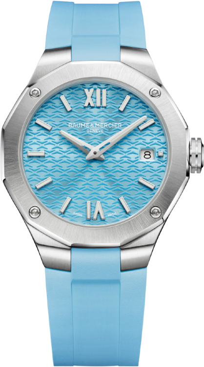 В дизайне и механизме женских часов от Baume & Mercier модельного ряда Riviera соблюдены все современные тенденции часового дела. Эта удивительная смесь порождает новый стиль часов, основанный на вековых традициях, получивших современную интерпретацию. Корпус часов изготовлен из нержавеющей стали и имеет размер 36 мм. Толщина корпуса часов составляет 9,47 мм. Высокоточный надежный кварцевый механизм не нуждается в подзаводке. Эти часы с водонепроницаемостью 50 м позволят вам плавать в бассейне или принимать душ. Циферблат закрыт прозрачным антибликовым стеклом из сапфирового хрусталя высокой прочности, благодаря чему обеспечивается максимальная защита от сколов и механических повреждений. Ремешок из каучука с простой стальной застежкой превосходно дополняет изысканный образ модели. Классика. Циферблат голубой.Гарантия и комплектация