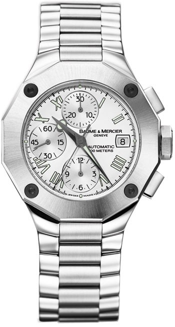 Любителям скорости и точных измерений придется по вкусу хронограф, разработанный компанией Baume & Mercier и адресованный истинным ценителям часового искусства. Кнопки управления хронографом имеют приятную, обтекаемую форму, которая сливается с дизайном часов, образуя цельную художественную композицию. Изготовленный из нержавеющей стали корпус часов, имеет размер 40 мм. Корпус часов толщиной 15,25 мм. Механизм с автоматическим подзаводом работает от амплитуды движения руки. Часы предназначены для того, чтобы в них плавали и имеют водонепроницаемость 100 м. Циферблат закрыт прозрачным антибликовым стеклом из сапфирового хрусталя высокой прочности, благодаря чему обеспечивается максимальная защита от сколов и механических повреждений. Браслет выполнен из нержавеющей стали и комплектуется раскладывающейся стальной застежкой. Хронограф.Гарантия и комплектация