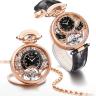В дизайне и механизме мужских часов от Bovet модельного ряда Amadeo Fleurier Grand Complications соблюдены все современные тенденции часового дела. Эта удивительная смесь порождает новый стиль часов, основанный на вековых традициях, получивших современную интерпретацию. Турбийон компенсирует погрешности хода, вызываемые земным притяжением, неся на своей вращающейся каретке баланс часового механизма. Часы выполнены в корпусе из розового золота 18 карат размером 46 мм. Толщина корпуса составляет 18,3 мм. Механизм часов с ручным подзаводом от элегантной заводной головки. Часы с водонепроницаемостью 30 м перенесут небольшое случайное попадание воды. Циферблат закрыт прозрачным антибликовым стеклом из сапфирового хрусталя высокой прочности, благодаря чему обеспечивается максимальная защита от сколов и механических повреждений. Благодаря прозрачной задней крышке корпуса можно увидеть практически все детали превосходного механизма и получать эстетическое наслаждение, глядя на его слаженную работу. Ремешок выполнен из кожи аллигатора и комплектуется простой золотой застежкой. Tourbillon. Запас хода до 120 часов. Задняя крышка прозрачная.Гарантия и комплектация