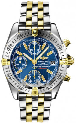 Динамичный хронограф из модельного ряда от Breitling для мужчин. Кнопки управления хронографом имеют приятную, обтекаемую форму, которая сливается с дизайном часов, образуя цельную художественную композицию. Корпус часов изготовлен из нержавеющей стали и желтого золота и имеет размер 39 мм. Толщина корпуса часов составляет 16,1 мм. Механизм с автоматическим подзаводом работает от амплитуды движения руки. Часы предназначены для того, чтобы в них плавали и имеют водонепроницаемость 100 м. Циферблат закрыт прозрачным антибликовым стеклом из сапфирового хрусталя высокой прочности, благодаря чему обеспечивается максимальная защита от сколов и механических повреждений. Часы укомплектованы стальным браслетом с раскладывающейся застежкой стальной, превосходно дополняющим эксклюзивный образ модели. Хронограф. Хронометр. Запас хода 42 часа.Гарантия и комплектация