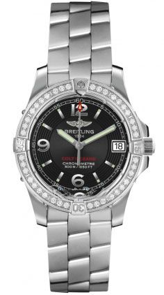 Прогрессивные технологии женских часов удивительным образом переплетаются с устоявшимся традиционным дизайном модельного ряда, присущим часам от компании Breitling. Инкрустация бриллиантами превращает элегантные часы в изысканное украшение. Часы выполнены в корпусе из нержавеющей стали размером 33,2 мм. Толщина корпуса составляет 12,5 мм. Высокоточный надежный кварцевый механизм не нуждается в подзаводке. Эти часы созданы специально для дайвинга, они могут выдерживать глубинное давление воды и обладают водонепроницаемостью в 500 м. Циферблат закрыт прозрачным антибликовым стеклом из сапфирового хрусталя высокой прочности, благодаря чему обеспечивается максимальная защита от сколов и механических повреждений. Ремешок, изготовленный с раскладывающейся застежкой из стали, выполнен в строгом стиле и воплощает элегантность. Хронометр. Бриллианты.Гарантия и комплектация