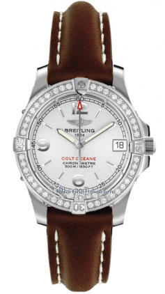Уникальные, потрясающие женские часы от Breitling коллекции станут настоящим подарком для истинных поклонников классики и традиций, которые прошли сквозь десятилетия. Инкрустация бриллиантами превращает элегантные часы в изысканное украшение и они гармонично дополнят образ своего обладателя и подчеркнут его индивидуальность и изысканный вкус. Корпус часов изготовлен из нержавеющей стали и имеет размер 33,2 мм. Толщина корпуса часов составляет 12,5 мм. Высокоточный надежный кварцевый механизм не нуждается в подзаводке. Эти часы созданы специально для дайвинга, они могут выдерживать глубинное давление воды и обладают водонепроницаемостью в 500 м. Циферблат закрыт прозрачным антибликовым стеклом из сапфирового хрусталя высокой прочности, благодаря чему обеспечивается максимальная защита от сколов и механических повреждений. Часы укомплектованы кожаным ремешком с простой застежкой из стали, превосходно дополняющим эксклюзивный образ модели. Хронометр. Бриллианты.Гарантия и комплектация