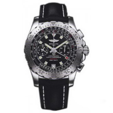 В дизайне и механизме хронографа от Breitling модельного ряда соблюдены все современные тенденции часового дела. Он безусловно придется по вкусу любителям скорости и точных измерений. Часы выполнены в корпусе из нержавеющей стали размером 43,5 мм. Толщина корпуса составляет 16 мм. Механизм с автоматическим подзаводом работает от амплитуды движения руки. Часы предназначены для того, чтобы в них плавали и имеют водонепроницаемость 200 м. Циферблат закрыт прозрачным антибликовым стеклом из сапфирового хрусталя высокой прочности, благодаря чему обеспечивается максимальная защита от сколов и механических повреждений. Модель поставляется на кожаном ремешке с простой стальной застежкой. Хронограф. Хронометр. Запас хода 42 часа.Гарантия и комплектация
