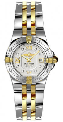 Использование высокотехнологичной механики и совершенных форм является неотъемлемым атрибутом легендарной серии от Breitling. Эти женские часы идеально подойдут уверенным в себе людям с высоким социальным статусом. Инкрустация бриллиантами превращает элегантные часы в изысканное украшение. Корпус часов изготовлен из нержавеющей стали и желтого золота и имеет размер 30 мм. Толщина корпуса часов составляет 12,2 мм. Высокоточный надежный кварцевый механизм не нуждается в подзаводке. Часы предназначены для того, чтобы в них плавали и имеют водонепроницаемость 100 м. Циферблат закрыт прозрачным антибликовым стеклом из сапфирового хрусталя высокой прочности, благодаря чему обеспечивается максимальная защита от сколов и механических повреждений. Модель поставляется на стальном браслете с раскладывающейся стальной застежкой. 8 белых бриллиантов. Хронометр.Гарантия и комплектация