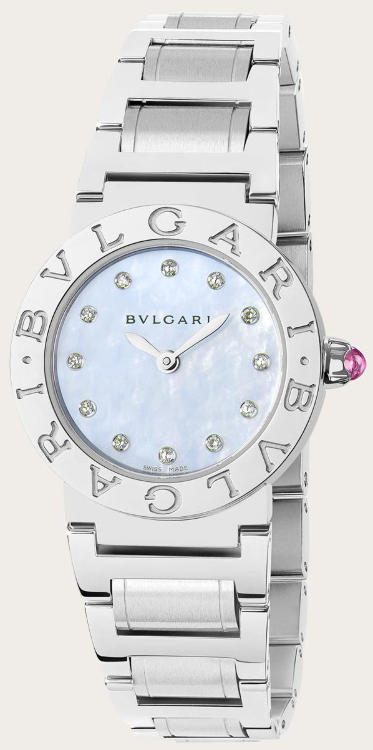 Строгость, элегантность, лаконичность, простота и изысканность форм в сочетании с непревзойденным качеством являются основными характеристиками женских наручных часов компании Bvlgari. Инкрустация бриллиантами превращает элегантные часы в изысканное украшение. Изготовленный из нержавеющей стали корпус часов, имеет размер 26 мм. Высокоточный надежный кварцевый механизм не нуждается в подзаводке. Часы с водонепроницаемостью 30 м перенесут небольшое случайное попадание воды. Циферблат закрыт прозрачным антибликовым стеклом из сапфирового хрусталя высокой прочности, благодаря чему обеспечивается максимальная защита от сколов и механических повреждений. Модель поставляется на стальном браслете с раскладывающейся стальной застежкой. Бриллианты 12 шт. Циферблат голубой перламутровый.Гарантия и комплектация