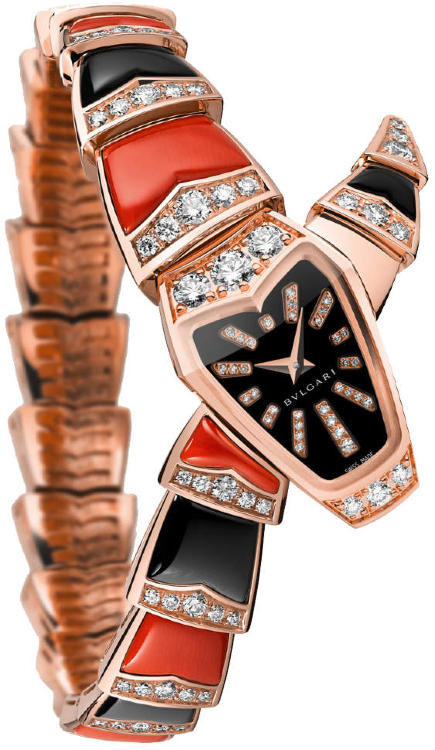 | Дополнение | Бриллианты на корпусе, циферблате, браслете. Элементы из коралла и оникса на браслете. Циферблат из черного сапфирового стекла. |
