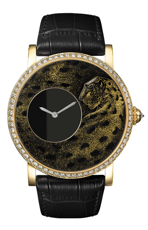 Часы серии Creative Jeweled Watches представляют собой композицию, объединившую в себе современный смелый дизайн, идеально гармонирующий с лучшими традициями мануфактуры Cartier. Инкрустация бриллиантами превращает элегантные часы в изысканное украшение. Часы модели HPI00700 выпущены ограниченным количеством экземпляров. Изготовленный из желтого золота 18 карат корпус часов, имеет размер 42 мм. Механический калибр с ручным автоподзаводом, который приводит в движение стрелки, собран лучшими мастерами. Часы с водонепроницаемостью 30 м перенесут небольшое случайное попадание воды. Циферблат закрыт прозрачным антибликовым стеклом из сапфирового хрусталя высокой прочности, благодаря чему обеспечивается максимальная защита от сколов и механических повреждений. Из сапфирового хрусталя сделана и задняя крышка, которая дает возможность воочию увидеть детали механизма и вносит нотку неординарности. Ремешок из кожи аллигатора с раскладывающейся золотой застежкой превосходно дополняет изысканный образ модели. Ограниченная серия (Limited Edition) 80 шт. 111 бриллиантов 1,69 карата. Запас хода 48 часов. Задняя крышка прозрачная. Каждый экземпляр имеет уникальный номер.Гарантия и комплектация