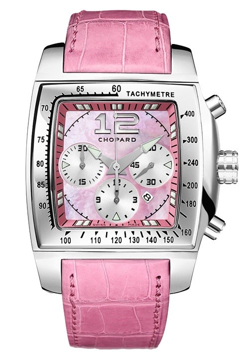Удобный и, в то же время, стильный хронограф для женщин. Популярность классических решений в часовой индустрии обусловлена универсальностью линии от Chopard, простотой и представительностью данного стиля. Функциональность хронографа придется по вкусу людям спортивным, предпочитающим активный образ жизни. Часы выполнены в корпусе из нержавеющей стали размером 40х45 мм. Механизм с автоматическим подзаводом работает от амплитуды движения руки. Часы с водонепроницаемостью 30 м перенесут небольшое случайное попадание воды. Циферблат закрыт прозрачным антибликовым стеклом из сапфирового хрусталя высокой прочности, благодаря чему обеспечивается максимальная защита от сколов и механических повреждений. Часы укомплектованы кожаным ремешком с раскладывающейся застежкой из стали, превосходно дополняющим эксклюзивный образ модели. Хронограф. Запас хода 40 часов.Гарантия и комплектация