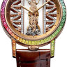 | Дополнение | Ограниченная серия (Limited edition) 18 шт. 68 сапфиров багетной огранки 4,50 карата. 15 перидотов багетной огранки 0,99 карата. 8 цаворитов багетной огранки 1,04 карата. 5 рубинов багетной огранки 0,65 карата. 108 бриллиантов 0,5 карата. Скелетон. Калибр CO 113. Запас хода до 40 часов. Циферблат с микроструктурой из золота № 5 с золотым покрытием. Прозрачная задняя крышка. |