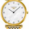| Дополнение | На циферблате 12 бриллиантов общим весом 0,081 карата. Калибр L420. Циферблат белый перламутровый. Тройная застежка с системой блокировки и кнопкой. |