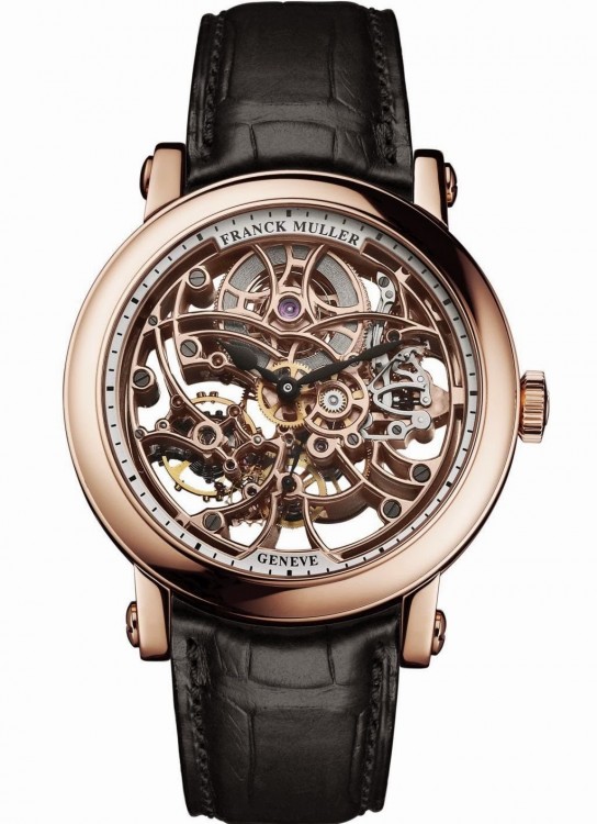 Часы классического дизайна от Franck Muller для стильных мужчин. Индивидуальность данной модели определяет статус своего обладателя и часы становятся неотъемлемой составляющей образа современного человека. Это лучший выбор для тех, кто хочет подчеркнуть свой высокий статус и неординарность. Замысловатый механизм скелетинизированных часов обнажает их настоящий характер и приподнимает завесу тайны над мануфактурным искусством XXI века. Изготовленный из розового золота 18 карат корпус часов, имеет размер 45 мм. Корпус часов толщиной 11,2 мм. Механизм часов с ручным подзаводом от элегантной заводной головки. Часы с водонепроницаемостью 30 м перенесут небольшое случайное попадание воды. Циферблат закрыт прозрачным антибликовым стеклом из сапфирового хрусталя высокой прочности, благодаря чему обеспечивается максимальная защита от сколов и механических повреждений. Из сапфирового хрусталя сделана и задняя крышка, которая дает возможность воочию увидеть детали механизма и вносит нотку неординарности. Ремешок выполнен из кожи аллигатора и комплектуется простой золотой застежкой. Запас хода до 168 часов. Задняя крышка прозрачная.Гарантия и комплектация