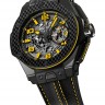 Динамичный хронограф из модельного ряда Big Bang от Hublot для мужчин. Кнопки управления хронографом имеют приятную, обтекаемую форму, которая сливается с дизайном часов, образуя цельную художественную композицию. Часы модели 401.CQ.0129.VR выпущены ограниченным количеством экземпляров. Модель поставляется в керамическом корпусе размером 45,5 мм. Механизм с автоматическим подзаводом работает от амплитуды движения руки. Часы предназначены для того, чтобы в них плавали и имеют водонепроницаемость 100 м. Циферблат закрыт прозрачным антибликовым стеклом из сапфирового хрусталя высокой прочности, благодаря чему обеспечивается максимальная защита от сколов и механических повреждений. Из сапфирового хрусталя сделана и задняя крышка, которая дает возможность воочию увидеть детали механизма и вносит нотку неординарности. Модель поставляется на кожаном ремешке с раскладывающейся стальной застежкой. Ограниченная серия (Limited Edition) 1000 шт. Skeleton. Хронограф. Запас хода до 72 часов. Задняя крышка прозрачная.Гарантия и комплектация