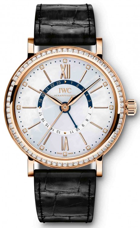 Мужские часы представляют собой композицию, объединившую в себе современный смелый дизайн, идеально гармонирующий с лучшими традициями мануфактуры IWC. Коллекция Portofino элегантных часов поражает своим разнообразием, роскошью и функциональностью. Индикатор расположенный на циферблате часов, позволяет отображать время одновременно для двух разных часовых поясов. Изготовленный из розового золота 18 карат корпус часов, имеет размер 37 мм. Корпус часов толщиной 11 мм. Механизм с автоматическим подзаводом работает от амплитуды движения руки. Часы с водонепроницаемостью 30 м перенесут небольшое случайное попадание воды. Циферблат закрыт прозрачным антибликовым стеклом из сапфирового хрусталя высокой прочности, благодаря чему обеспечивается максимальная защита от сколов и механических повреждений. Ремешок выполнен из кожи аллигатора и комплектуется простой золотой застежкой. Бриллианты. Запас хода до 42 часов.Гарантия и комплектация