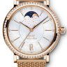 Строгость, элегантность, лаконичность, простота и изысканность форм в сочетании с непревзойденным качеством являются основными характеристиками женских наручных часов компании IWC. Инкрустация бриллиантами превращает элегантные часы в изысканное украшение. Часы произведены в золотом корпусе размером 37 мм. Толщина часов составляет 11 мм. Механизм с автоматическим подзаводом работает от амплитуды движения руки. Часы с водонепроницаемостью 30 м перенесут небольшое случайное попадание воды. Циферблат закрыт прозрачным антибликовым стеклом из сапфирового хрусталя высокой прочности, благодаря чему обеспечивается максимальная защита от сколов и механических повреждений. Браслет из розового золота с раскладывающейся золотой застежкой превосходно дополняет изысканный образ модели. Бриллианты. Запас хода до 42 часов.Гарантия и комплектация