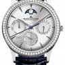 Элегантная классика из модельного ряда Master от Jaeger-LeCoultre для мужчин. Часы в превосходном исполнении идеально сочетают в себе гармонично созданный дизайн и передовые часовые технологии. Часы с вечным календарем имеют память, которая запрограммирована механическим образом на много лет вперед. Без всякого вмешательства со стороны человека они будут правильно показывать дату в течение целого столетия. Модель поставляется в золотом корпусе размером 39 мм. Корпус часов толщиной 9,2 мм. Механизм с автоматическим подзаводом работает от амплитуды движения руки. Часы с водонепроницаемостью 30 м перенесут небольшое случайное попадание воды. Циферблат закрыт прозрачным антибликовым стеклом из сапфирового хрусталя высокой прочности, благодаря чему обеспечивается максимальная защита от сколов и механических повреждений. Для изготовления задней крышки корпуса часов также применяется сапфировое стекло, благодаря чему обеспечивается обзор на работу часового механизма. Модель поставляется на кожаном с простой золотой застежкой. 80 бриллиантов 0,56 карата. Вечный календарь. Калибр Jaeger-LeCoultre 868/1. Запас хода до 43 часов. Циферблат серебристый. Задняя крышка прозрачная.Гарантия и комплектация