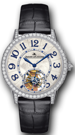 Изысканные женские часы от Jaeger-LeCoultre являются образцами классического стиля. Завершенные линии, гармоничное сочетание мельчайших деталей, высококачественные материалы и ярко выраженная индивидуальность каждой модели привлекают истинных поклонников имиджевых аксессуаров. Ультра высокую производительность часов, направленную на максимальную точность обеспечивает встроенный турбийон. Часы выполнены в корпусе из белого золота 18 карат размером 39 мм. Толщина корпуса составляет 12,2 мм. Механизм с автоматическим подзаводом работает от амплитуды движения руки. Эти часы с водонепоницаемостью 50 м позволят вам плавать в бассейне или принимать душ. Циферблат закрыт прозрачным антибликовым стеклом из сапфирового хрусталя высокой прочности, благодаря чему обеспечивается максимальная защита от сколов и механических повреждений. Модель поставляется на кожаном ремешке с раскладывающейся золотой застежкой. Tourbillon. 233 бриллианта 2,84 карата. сапфиры. Запас хода до 48 часов.Гарантия и комплектация