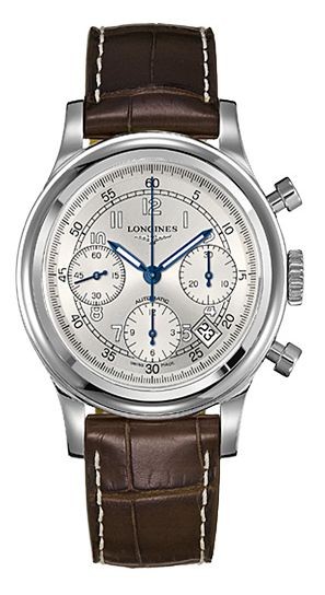 Модель наручного хронометра компании Longines идеально сочетает в себе гармонично созданный дизайн и передовые часовые технологии. Функциональность часов придется по вкусу людям спортивным, предпочитающим активный образ жизни. Часы произведены в стальном корпусе размером 41 мм. Толщина часов составляет 14 мм. Механизм с автоматическим подзаводом работает от амплитуды движения руки. Часы с водонепроницаемостью 30 м перенесут небольшое случайное попадание воды. Циферблат закрыт прозрачным антибликовым стеклом из сапфирового хрусталя высокой прочности, благодаря чему обеспечивается максимальная защита от сколов и механических повреждений. Ремешок выполнен из кожи аллигатора и комплектуется простой стальной застежкой. Запас хода до 42 часа. Хронограф.Гарантия и комплектация