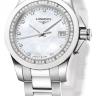 Элегантные классические женские часы с бриллиантами от Longines представляют собой идеальное сочетание гармоничного дизайна и совершенного технического оснащения. Они идеально подойдут уверенным в себе людям с высоким социальным статусом, которые хотят подчеркнуть свою индивидуальность и изысканный вкус. Часы произведены в стальном со вставками из керамики корпусе размером 35 мм. Толщина часов составляет 8 мм. Высокоточный надежный кварцевый механизм не нуждается в подзаводке. Эти часы с водонепроницаемостью 50 м позволят вам плавать в бассейне или принимать душ. Циферблат закрыт прозрачным антибликовым стеклом из сапфирового хрусталя высокой прочности, благодаря чему обеспечивается максимальная защита от сколов и механических повреждений. Браслет выполнен из нержавеющей стали и керамики и комплектуется раскладывающейся стальной застежкой. Бриллианты 65 шт. 0,411 карата. Безель из керамики.Гарантия и комплектация