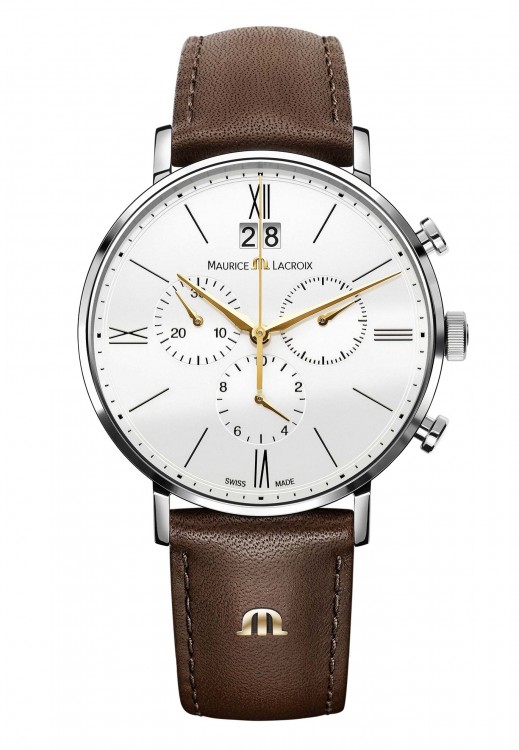 Хронограф от Maurice Lacroix для стильных мужчин. Дизайн данной модели определяет статус своего обладателя и часы становятся неотъемлемой составляющей образа современного человека. Эти часы являются эксклюзивным аксессуаром для мужчин, которые хотят подчеркнуть свою целеустремленность и активную жизненную позицию. Изготовленный из нержавеющей стали корпус часов, имеет размер 40 мм. Высокоточный надежный кварцевый механизм не нуждается в подзаводке. Эти часы с водонепоницаемостью 50 м позволят вам плавать в бассейне или принимать душ. Циферблат закрыт прозрачным антибликовым стеклом из сапфирового хрусталя высокой прочности, благодаря чему обеспечивается максимальная защита от сколов и механических повреждений. Модель поставляется на кожаном ремешке с простой стальной застежкой. Полированный циферблат белого цвета. Золотистые стрелки. Коричневый ремешок.Гарантия и комплектация
