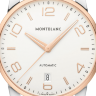 Элегантные классические часы от Montblanc представляют собой идеальное сочетание гармоничного дизайна и совершенного технического оснащения. Они идеально подойдут уверенным в себе людям с высоким социальным статусом, которые хотят подчеркнуть свою индивидуальность и изысканный вкус. Модель поставляется в стальном со вставками из розового золота корпусе размером 38x40 мм. Корпус часов толщиной 9,5 мм. Механизм с автоматическим подзаводом работает от амплитуды движения руки. Часы с водонепроницаемостью 30 м перенесут небольшое случайное попадание воды. Циферблат закрыт прозрачным антибликовым стеклом из сапфирового хрусталя высокой прочности, благодаря чему обеспечивается максимальная защита от сколов и механических повреждений. Браслет из нержавеющей стали и розового золота с раскладывающейся стальной застежкой превосходно дополняет изысканный образ модели. Запас хода до 42 часов.Гарантия и комплектация