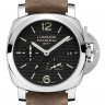 Строгость, элегантность, лаконичность, простота и изысканность форм в сочетании с непревзойденным качеством являются основными характеристиками мужских наручных часов компании Officine Panerai. Индикатор расположенный на циферблате часов, позволяет отображать время одновременно для двух разных часовых поясов. Часы произведены в стальном корпусе размером 42 мм. Механизм с автоматическим подзаводом работает от амплитуды движения руки. Часы предназначены для того, чтобы в них плавали и имеют водонепроницаемость 100 м. Циферблат закрыт прозрачным антибликовым стеклом из сапфирового хрусталя высокой прочности, благодаря чему обеспечивается максимальная защита от сколов и механических повреждений. Из сапфирового хрусталя сделана и задняя крышка, которая дает возможность воочию увидеть детали механизма и вносит нотку неординарности. Ремешок, изготовленный из натуральной кожи с простой застежкой из стали, выполнен в строгом стиле и воплощает элегантность. Запас хода до 72 часов. Прозрачная задняя крышка.Гарантия и комплектация