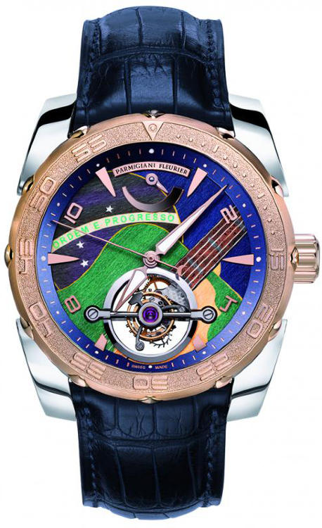 Удобные и, в то же время, стильные часы для мужчин. Популярность классических решений в часовой индустрии обусловлена универсальностью линии от Parmigiani Fleurier, простотой и представительностью данного стиля. Ультра высокую производительность часов, направленную на максимальную точность обеспечивает встроенный турбийон. Часы произведены в золотом корпусе размером 45 мм. Толщина часов составляет 14,2 мм. Механический калибр с ручным автоподзаводом, который приводит в движение стрелки, собран лучшими мастерами. Часы предназначены для того, чтобы в них плавали и имеют водонепроницаемость 100 м. Циферблат закрыт прозрачным антибликовым стеклом из сапфирового хрусталя высокой прочности, благодаря чему обеспечивается максимальная защита от сколов и механических повреждений. Благодаря прозрачной задней крышке корпуса можно увидеть практически все детали превосходного механизма и получать эстетическое наслаждение, глядя на его слаженную работу. Ремешок выполнен из кожи аллигатора и комплектуется раскладывающейся золотой застежкой. Материал корпуса: Розовое золото 18 карат и титан. Tourbillon. Запас хода до 168 часов. Задняя крышка прозрачная.Гарантия и комплектация