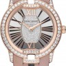 Изысканные женские часы, украшенные роскошными бриллиантами, от Roger Dubuis являются образцами классического стиля. Завершенные линии, гармоничное сочетание мельчайших деталей, высококачественные материалы и ярко выраженная индивидуальность каждой модели привлекают истинных поклонников имиджевых аксессуаров. Часы модели RDDBVE0016 выпущены ограниченным количеством экземпляров. Часы выполнены в корпусе из розового золота 18 карат размером 36 мм. Механизм с автоматическим подзаводом работает от амплитуды движения руки. Часы с водонепроницаемостью 30 м перенесут небольшое случайное попадание воды. Циферблат закрыт прозрачным антибликовым стеклом из сапфирового хрусталя высокой прочности, благодаря чему обеспечивается максимальная защита от сколов и механических повреждений. Из сапфирового хрусталя сделана и задняя крышка, которая дает возможность воочию увидеть детали механизма и вносит нотку неординарности. Модель поставляется на кожаном ремешке с раскладывающейся золотой застежкой. Бриллианты. Ограниченная серия (Limited Edition) 88 шт. Запас хода до 48 часов. Прозрачная задняя крышка.Гарантия и комплектация